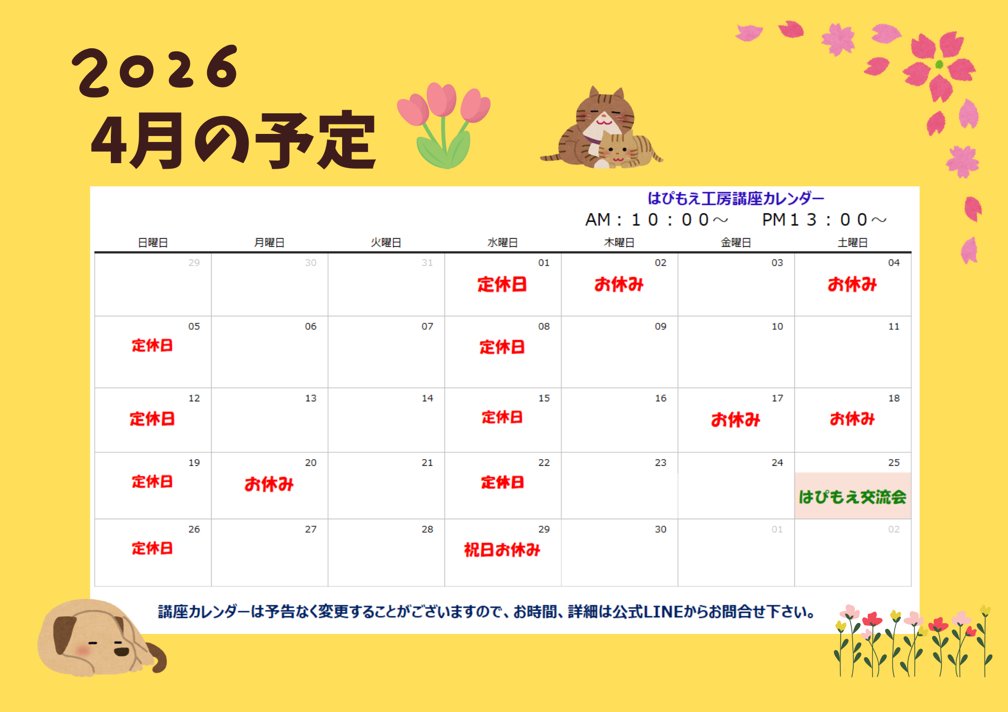 3月30日更新 | ※3月31日 お休みします(30日更新) 4月のカレンダーアップしました |